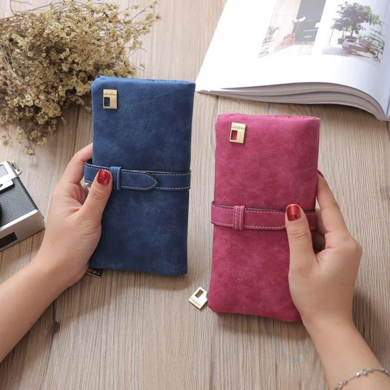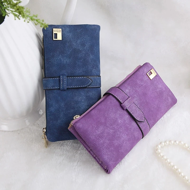 Новые модные женские кошельки, Длинный кошелек, женские кошельки, держатель для карт, кошельки из нубука и кожи на шнурке, женские длинные дизайнерские кошельки на молнии
