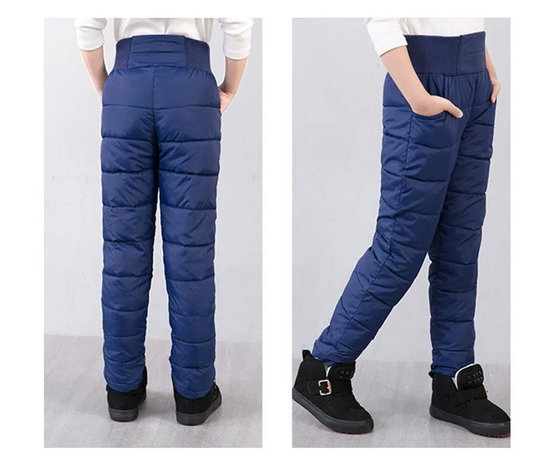 Зимние Детские теплые пуховые хлопковые брюки, детские высококачест...