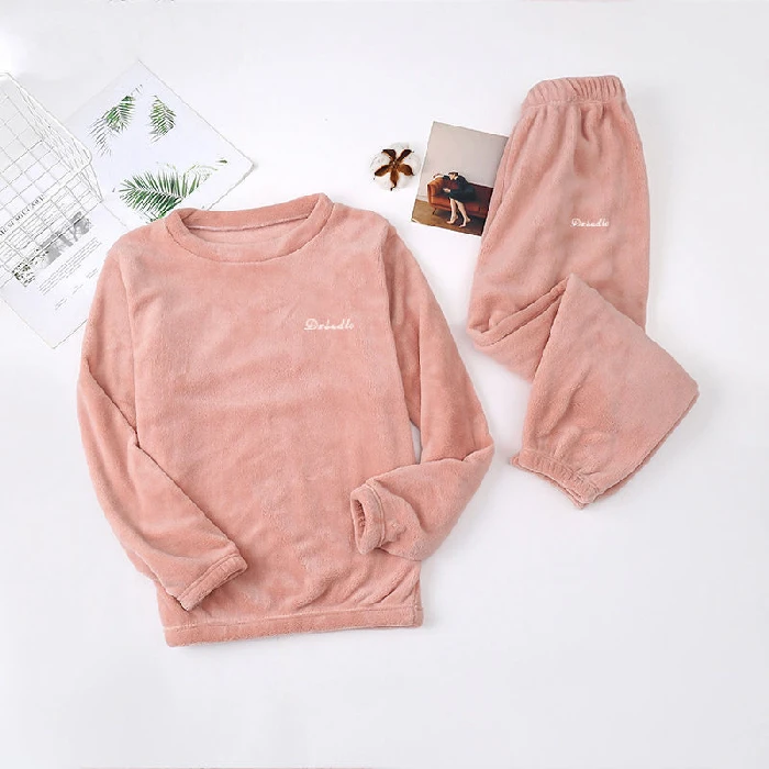 Зимняя Фланелевая пижама, Женская флисовая Пижама, одежда для сна, домашняя одежда, плотная Теплая Бархатная женская ночная рубашка кораллового цвета, костюм, Пижама