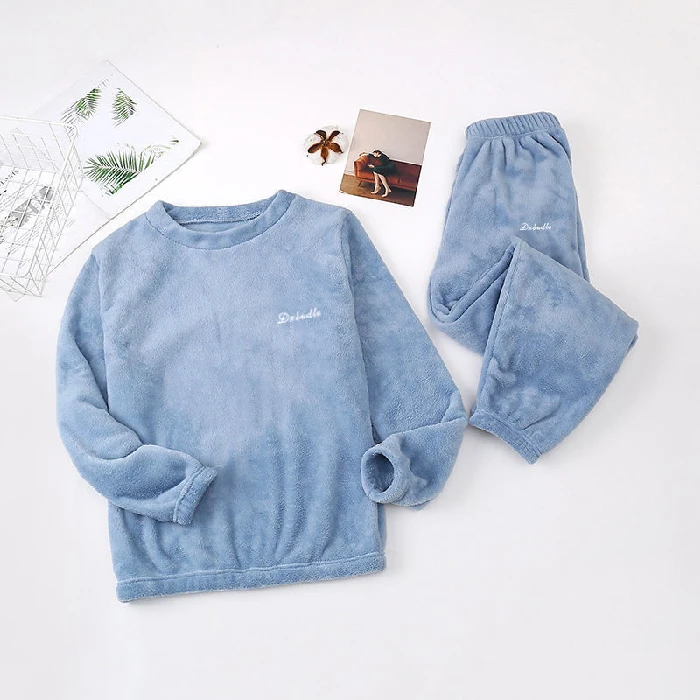 Зимний пижамный комплект, женская модная однотонная плотная бархатн...
