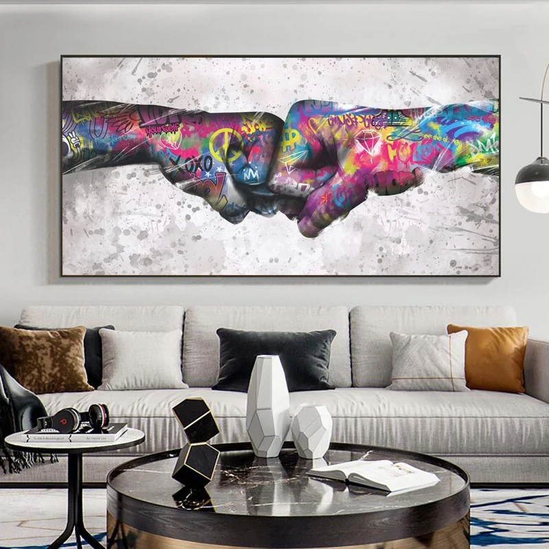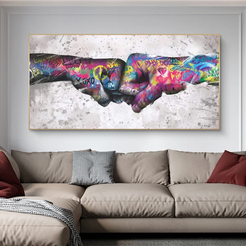 Картина на холсте с изображением удара кулака граффити, уличная стена, красочная картина для гостиной, домашний декор, художественные плакаты и принты