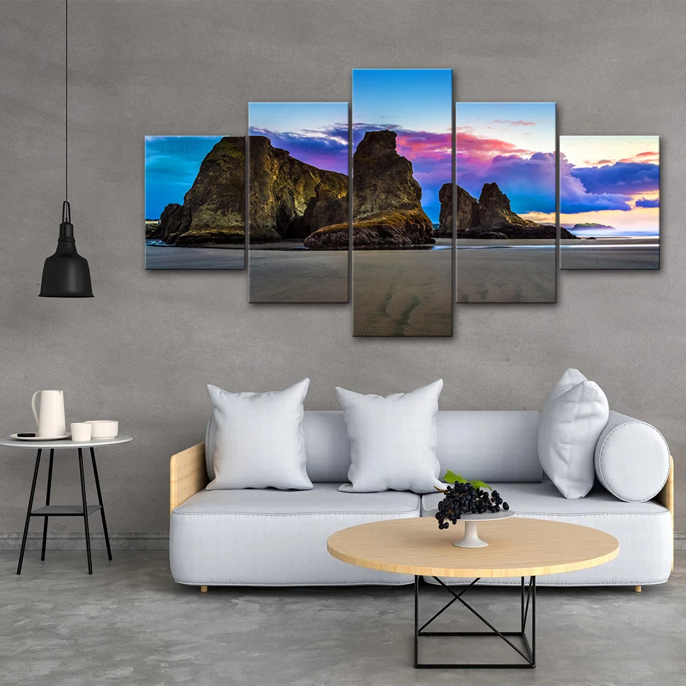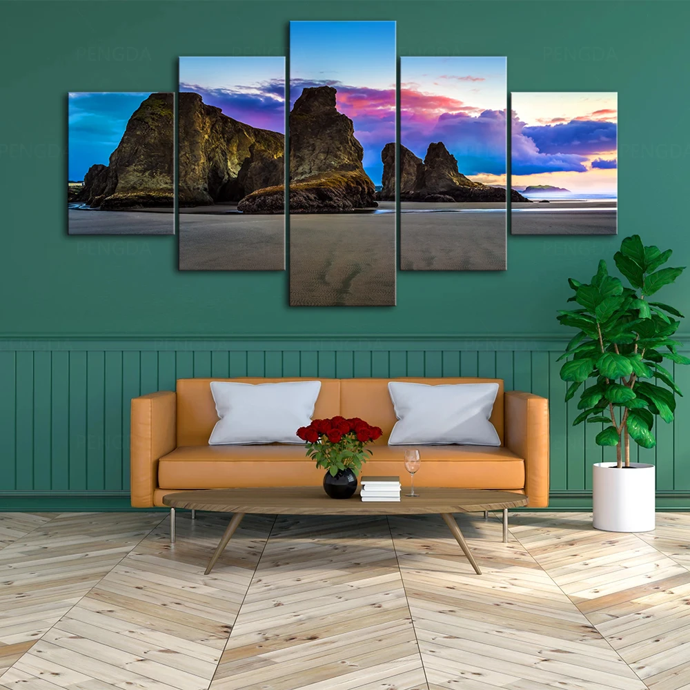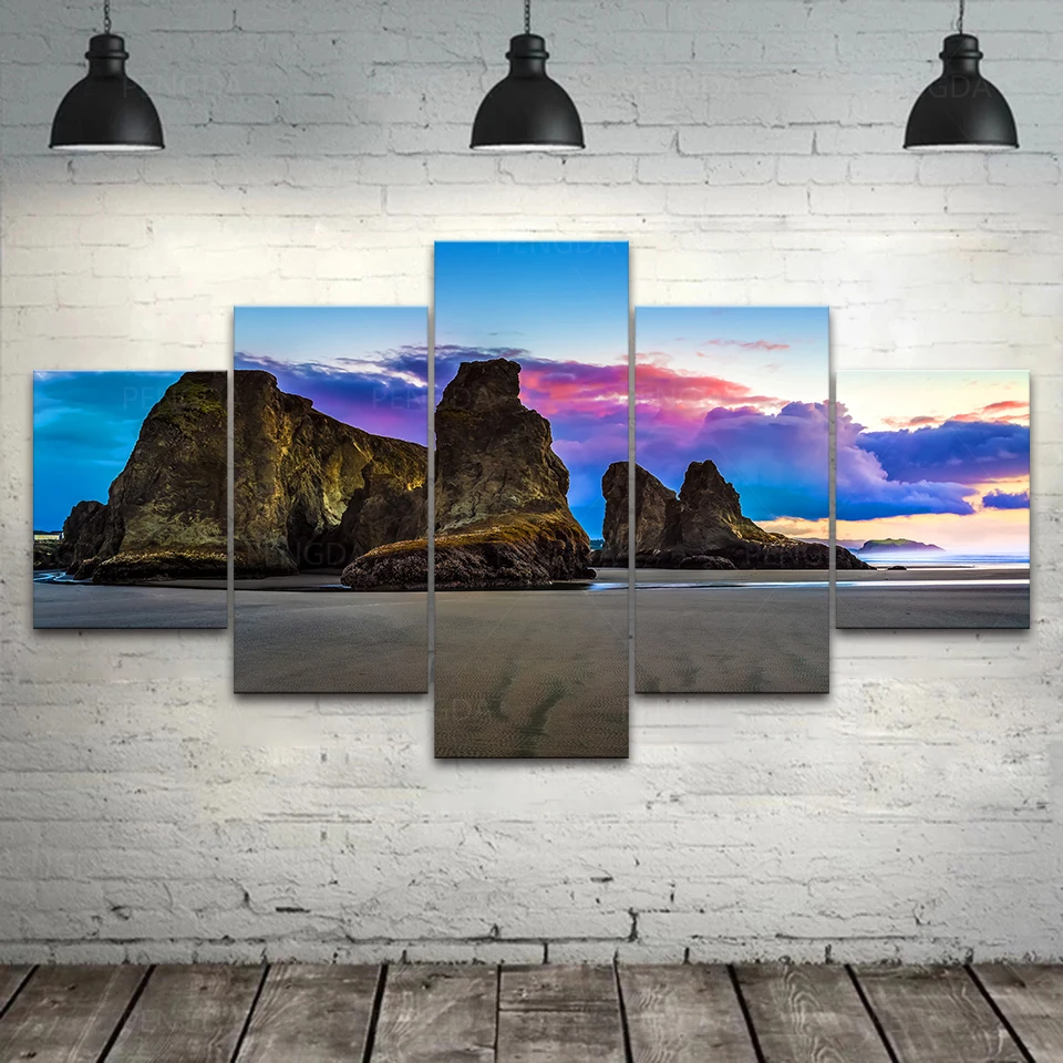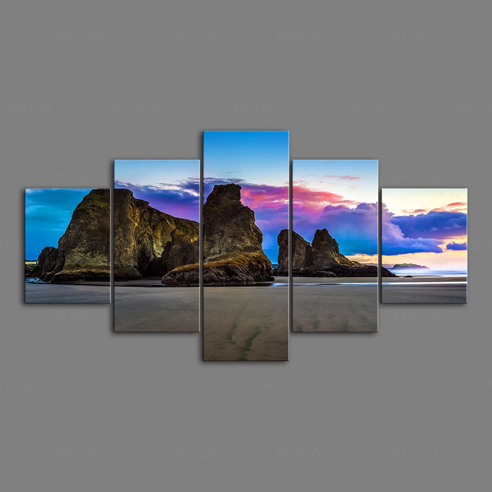 Домашний декор, 5 шт., настенная Картина на холсте с изображением скалы, рассвет, морской пляж, модульные плакаты с природным ландшафтом для спальни, рамка
