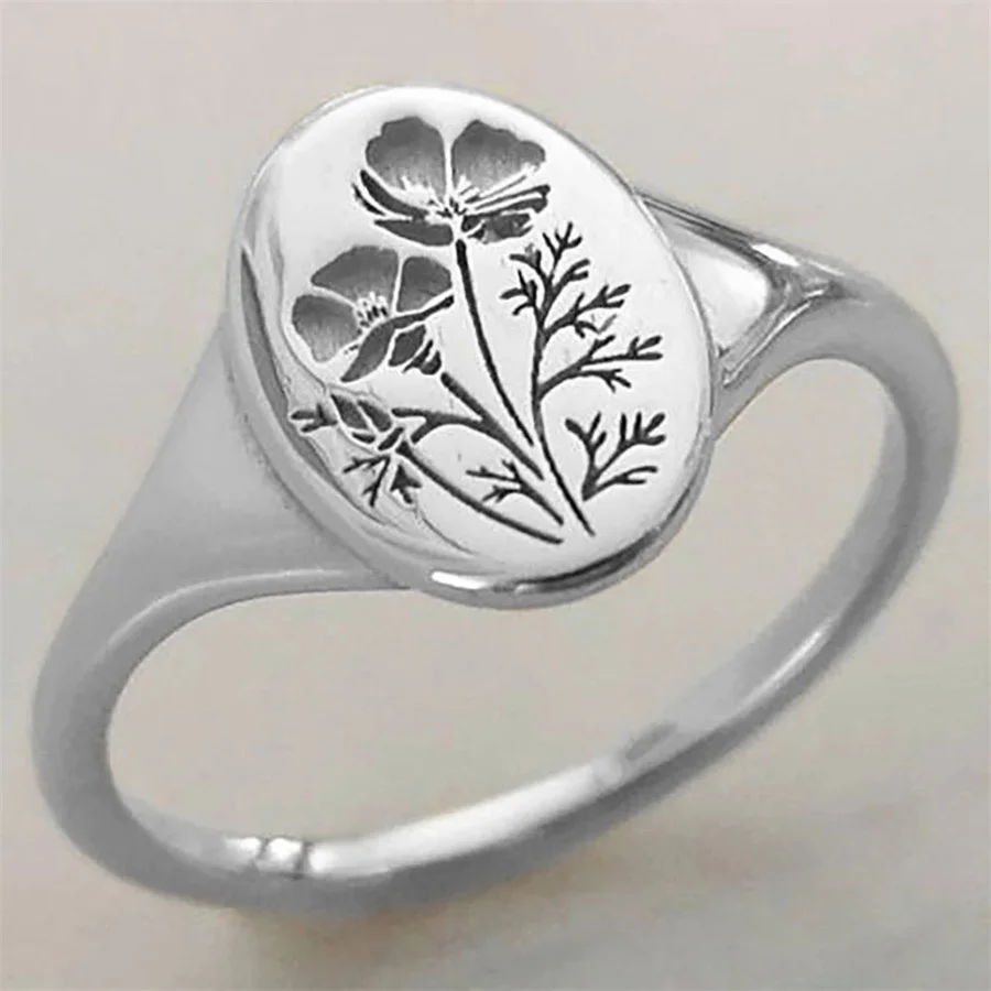 Гравировка цветок циркон кольцо для женщин Свадебные Коктейльные Ве...