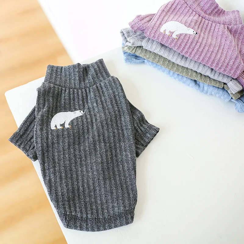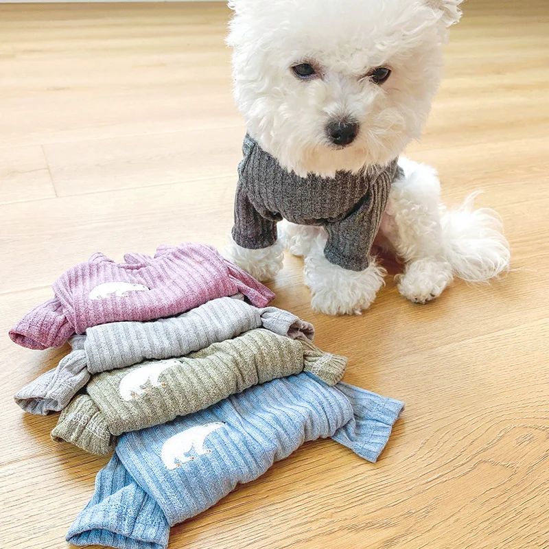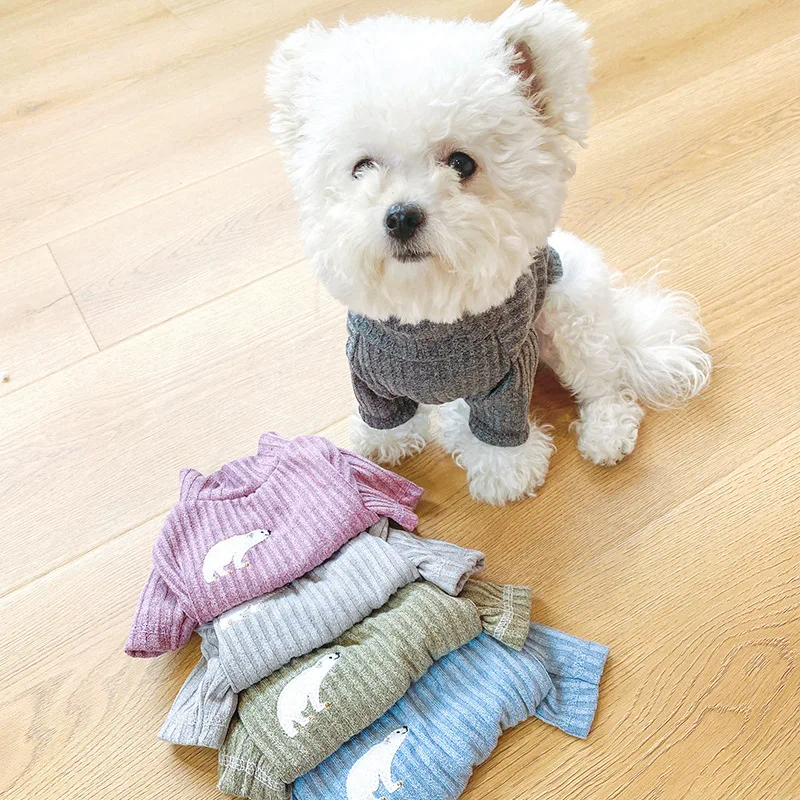 Осень-зима 2021, одежда для собак, теплая удобная рубашка, женская рубашка с двумя ногами и меховым помпоном, рубашка с круглым вырезом и белым медведем