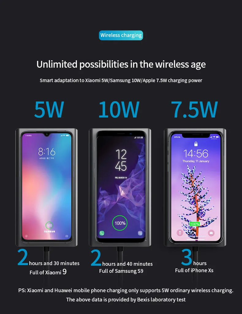 5,10 Вт Беспроводная зарядка:Поддержка 10W/7,5 W/5W