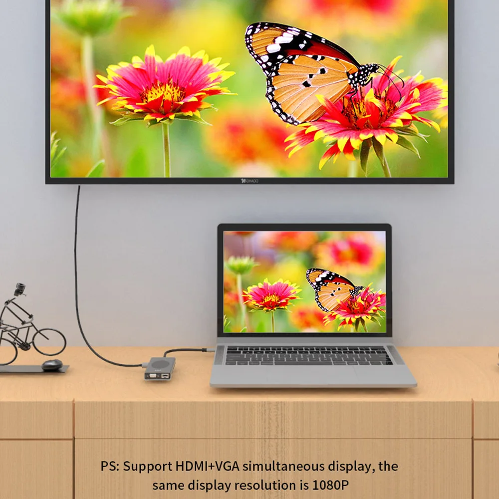 8. VGA:1080P, поддержка одновременного отображения HDMI + VGA, такое же разрешение дисплея 1080P