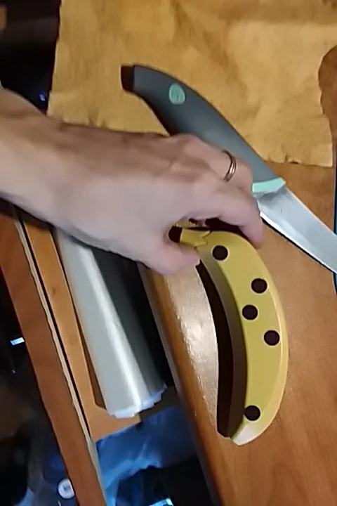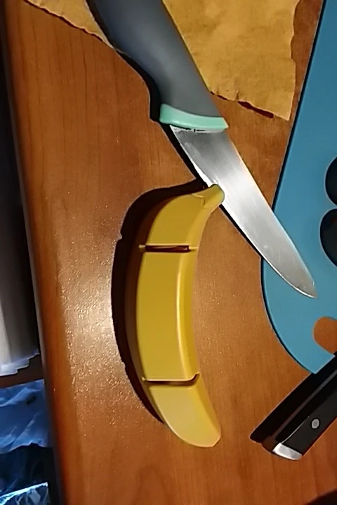 Легко использовать и быстро затачивать лезвие. Тело банана имеет 2 точильных узла, которые могут быть заточены трением по желанию