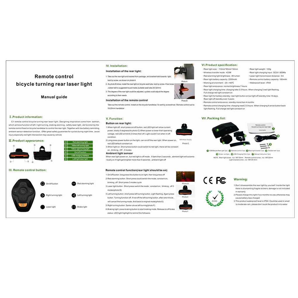 Беспроводной задний фонарь для велосипеда, зарядсветильник через USB, аксессуары для велоспорта, светодиодный задсветильник фонарь с дистанционным поворотом, лазерный сигнал