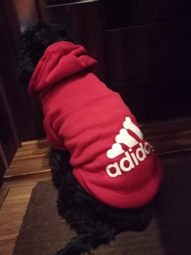 Толстовка отличная, качество хорошее. Для своего йорка 2,8 кг взяла М. Можно было взять чуть больше размер.