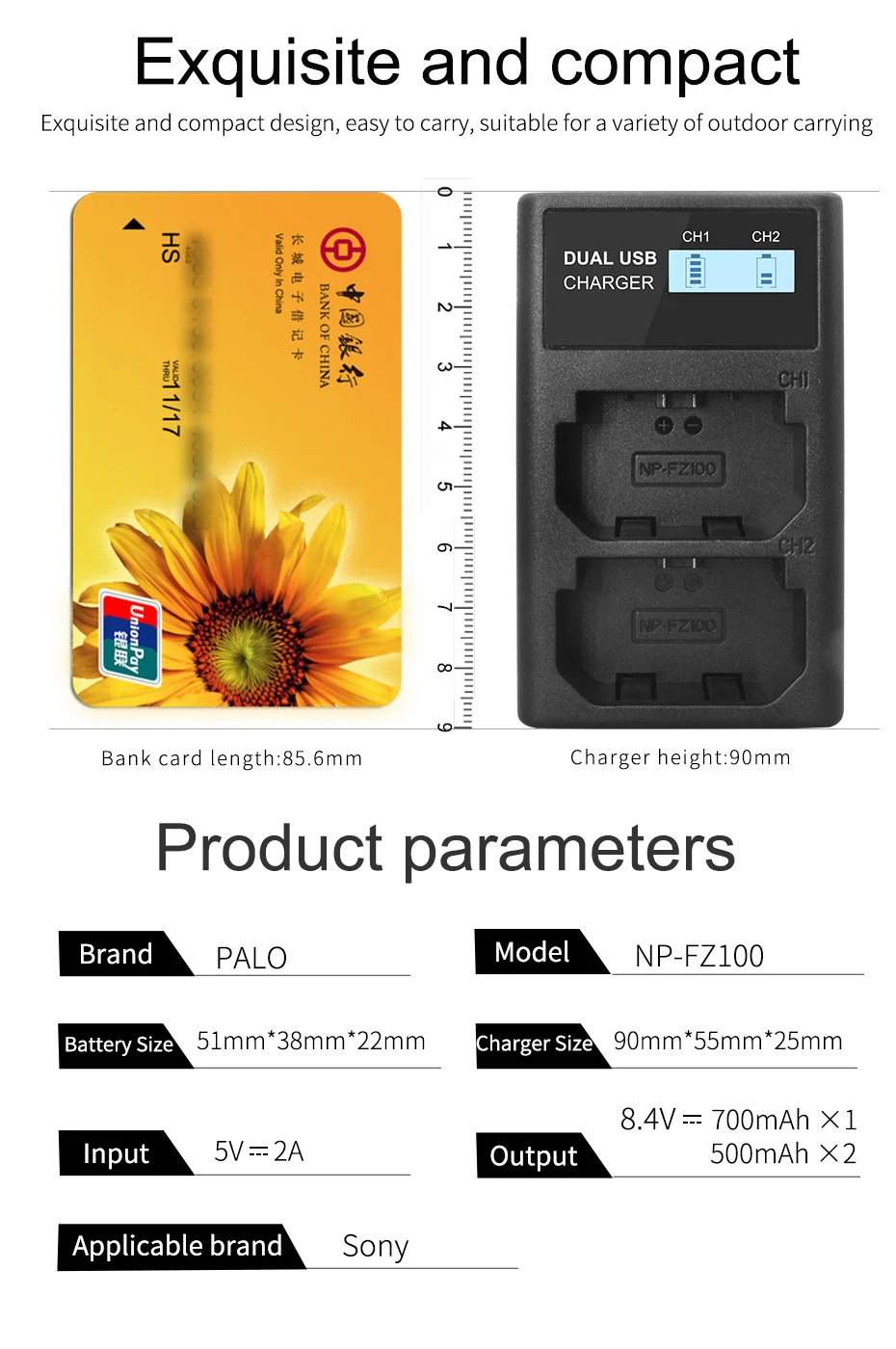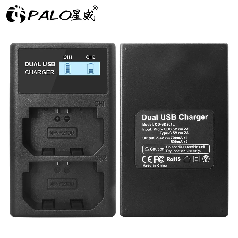 PALO 2 шт. 2280 мАч NP-FZ100 NPFZ100 NP FZ100 аккумулятор + двойное...