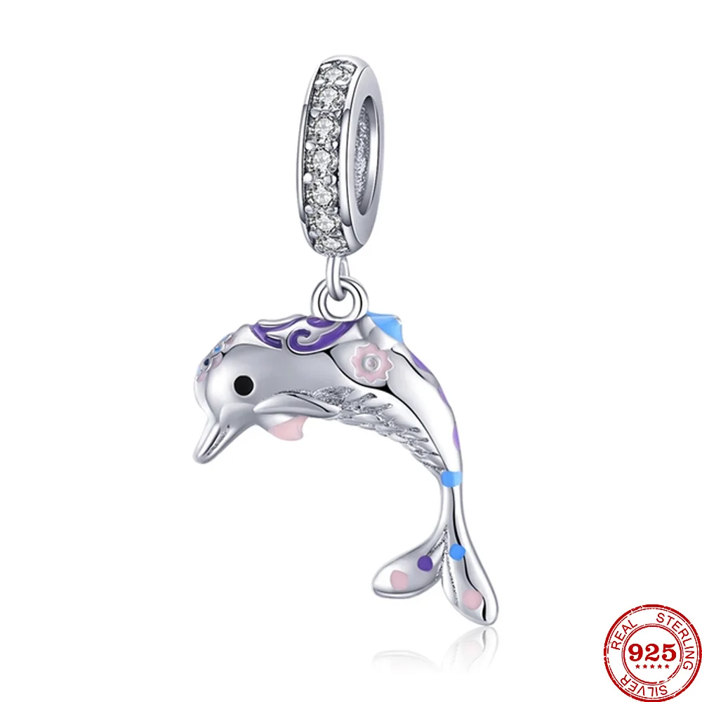 Новый оригинальный серебряный Дельфин Луна Эйфелева башня Шарм-Бусина Подходит для Pandora шармы серебряные 925 бусины браслет для женщин DIY ювелирные изделия подарок
