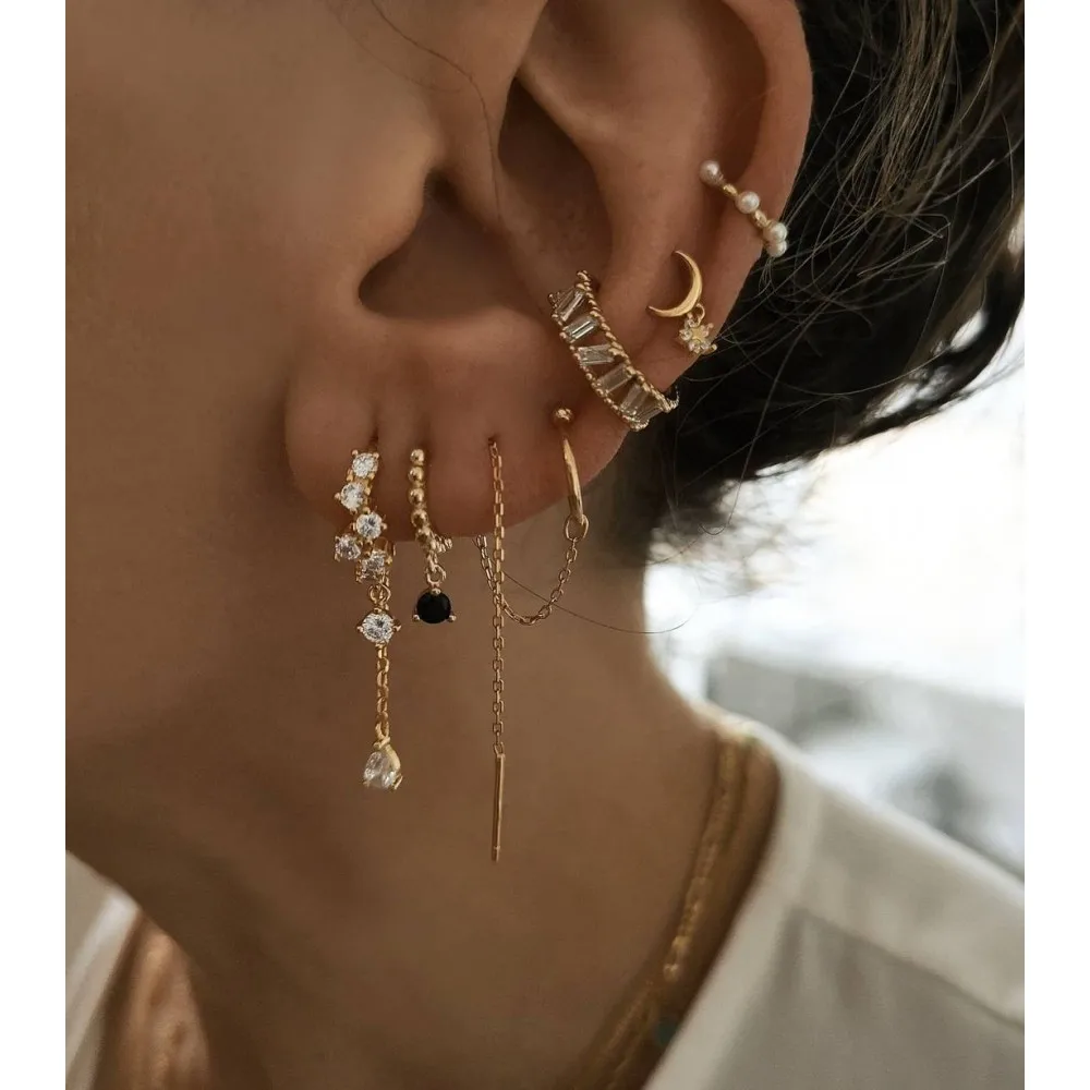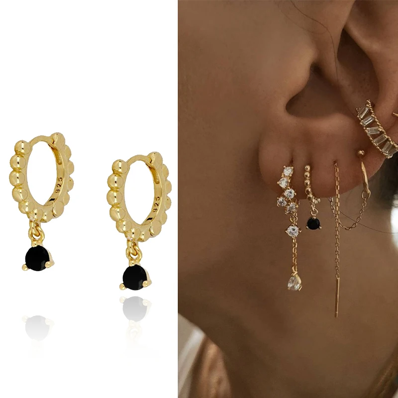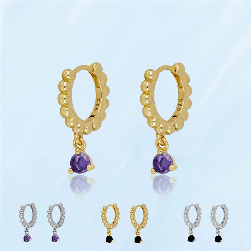 925 золотые серебряный пирсинг серьги-кольца для женщин, фиолетовые, черные, белые серьги-капли с кристаллами, простые модные привлекательные женские украшения