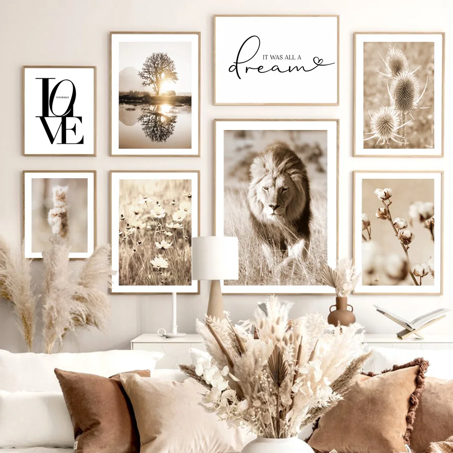 Настенная картина в стиле бохо, Лев, лиса, слон, Рино, Зебра, цвето...