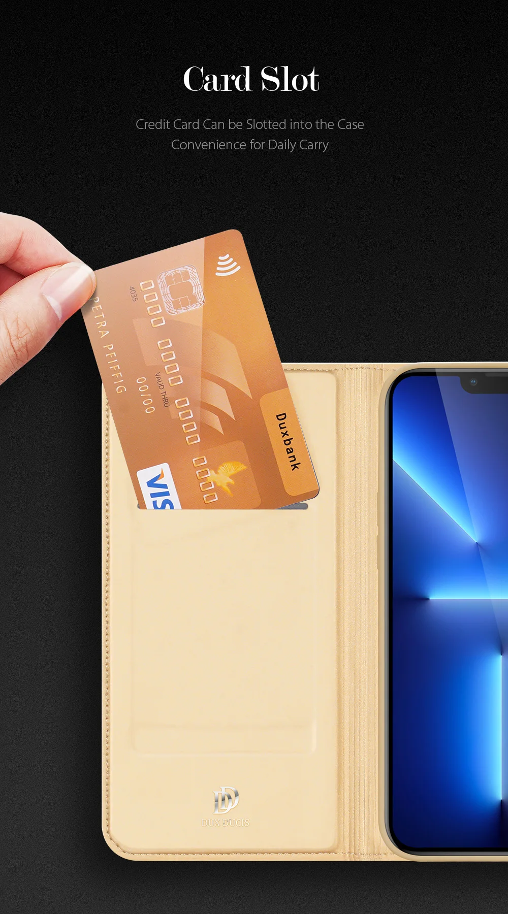 Чехол DUX DUCIS funda для iPhone 13 Pro Max, кожаный чехол-книжка с отделением для карт, с поддержкой беспроводной зарядки, устойчивая подставка