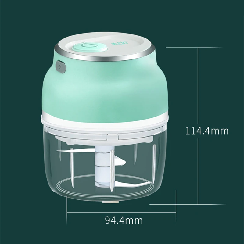 1,150 мл, с 3 острыми лезвиями, он нарезает чеснок, имбирь, перец, овощи, фрукты, мясо и т. д. с электрической функцией, сэкономит ваше время и отпустит руки. Небольшой измельчитель также удобен в хранении.