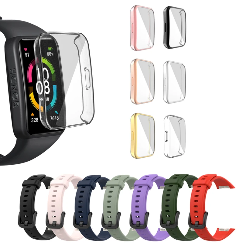 Чехол для часов Honor Band 6, Мягкий защитный чехол из ТПУ для Huawei Honor Band 6, защитные чехлы на весь экран + сменный ремешок, Лидер продаж