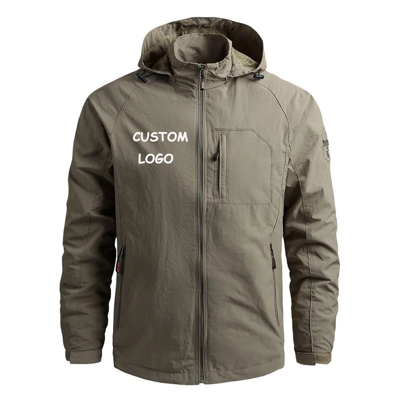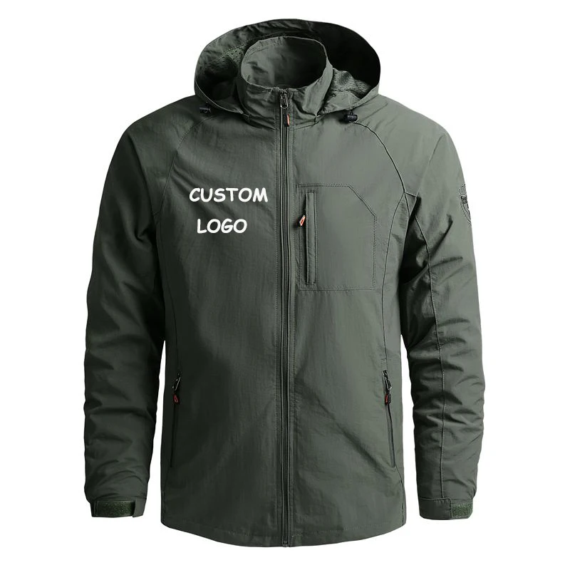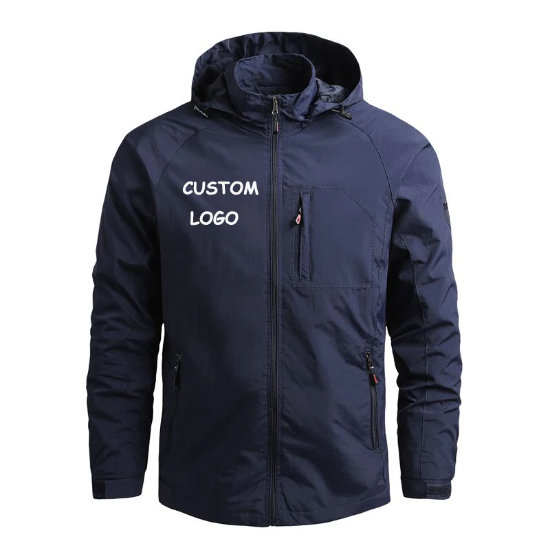 Новинка Осень 2021, Мужская водонепроницаемая ветровка с капюшоном и вашим логотипом на заказ, мужская повседневная Уличная походная куртка, Тактическая Военная куртка