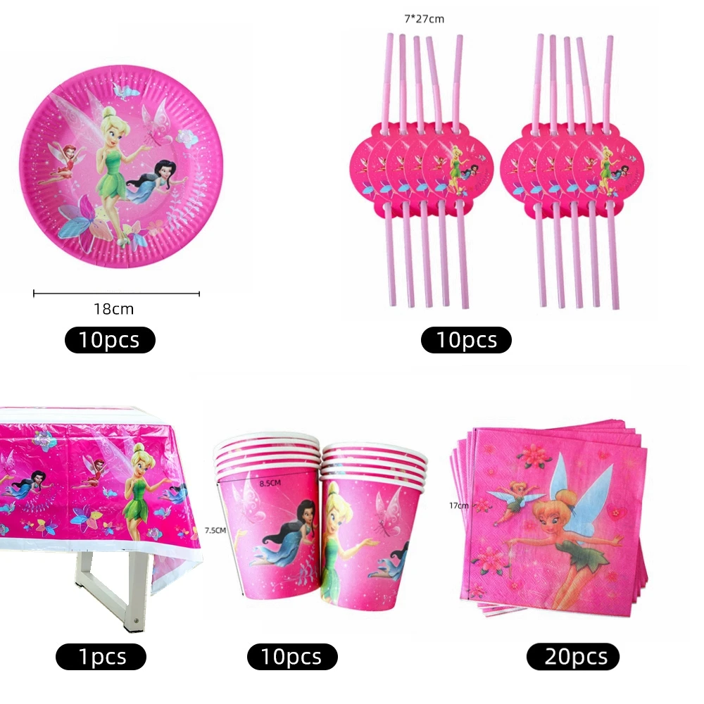 51 шт., мультяшный колокольчик-Динь, бумажная одноразовая посуда для девочек на день рождения, 7 дюймов