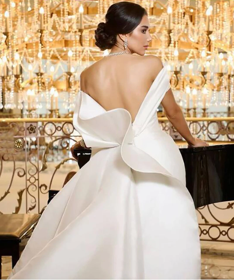 Свадебное платье принцессы LORIE с длинным шлейфом, атласное женское платье с открытыми плечами, свадебное платье с длинным шлейфом