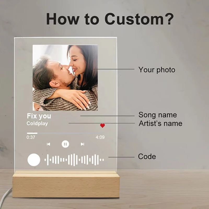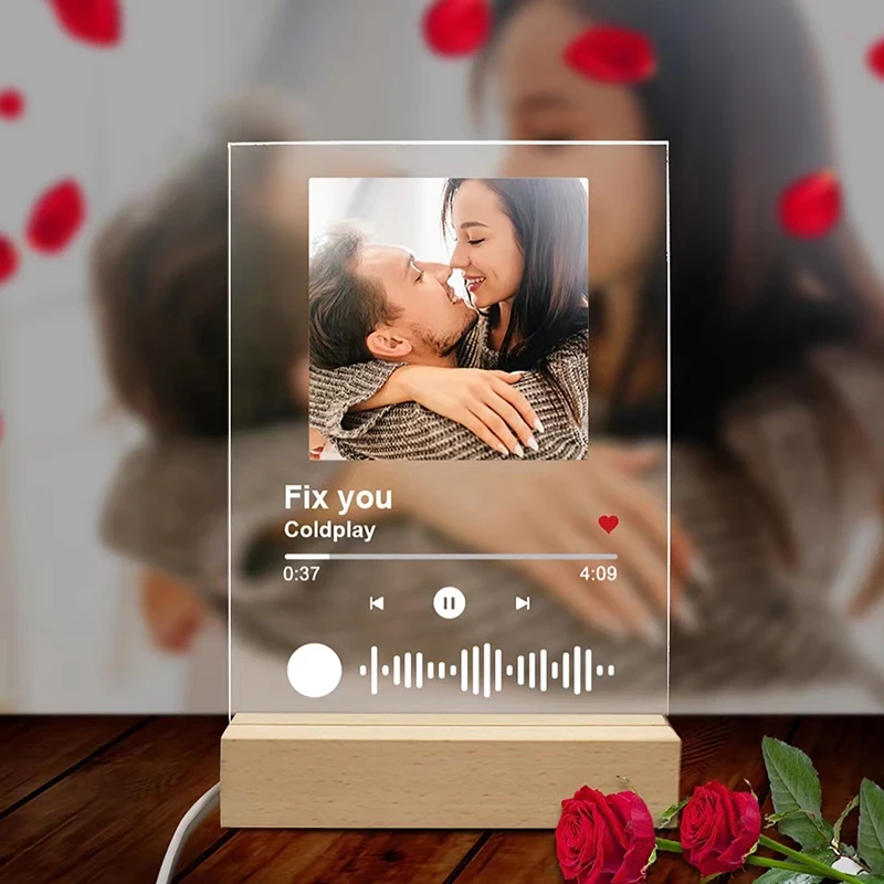 Персонализированная акриловая музыкальная доска с светодиодный деревянной подставкой