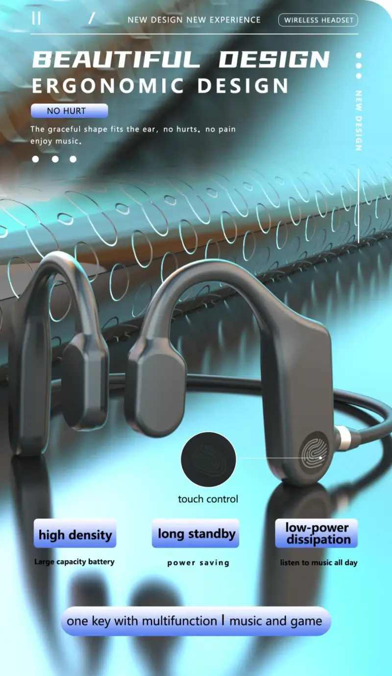 5,1 Bluetooth-совместимые наушники, Спортивная беспроводная гарнитура с ушным крючком, принцип воздушной проводимости, стереонаушники Hi-Fi с микрофоном