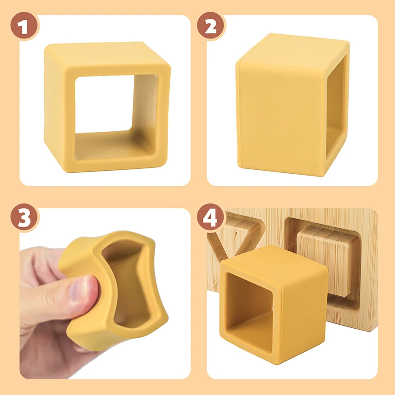 Силикон + деревянная геометрическая форма наложения здание мягкий блок силиконовый Прорезыватель здание 3D Складная образовательная игра игрушка