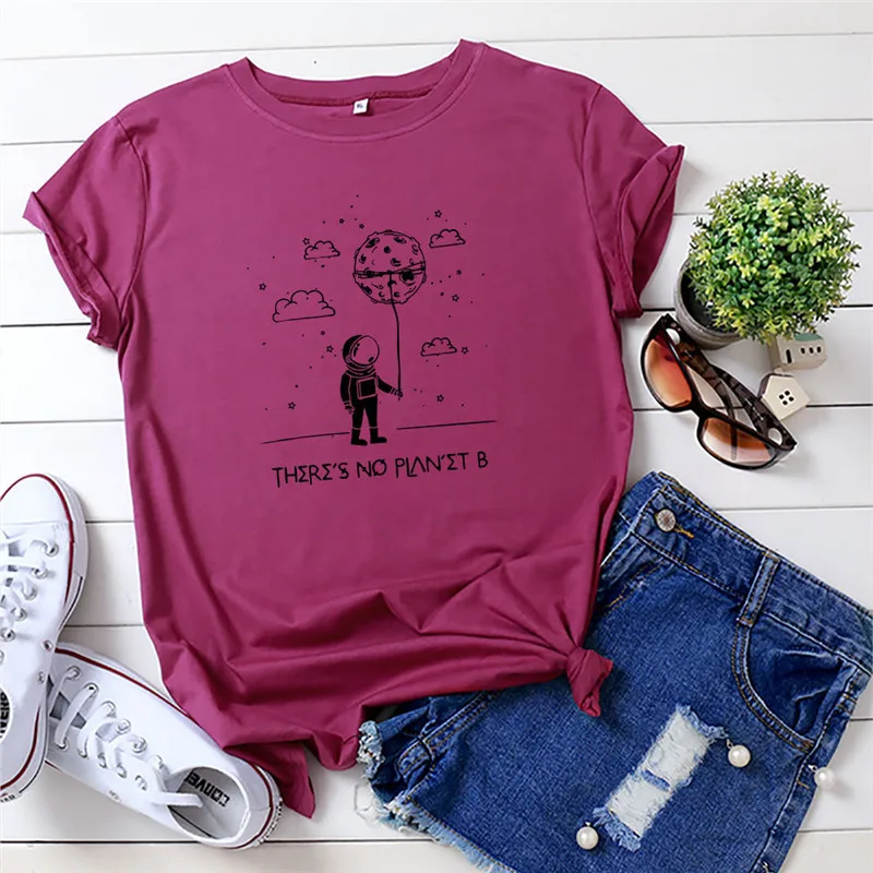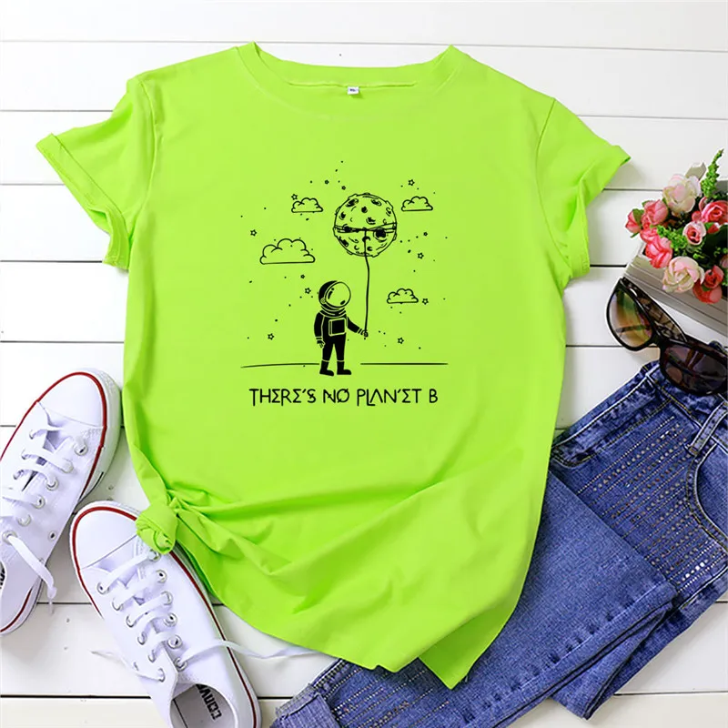 Летняя футболка из 100% хлопка, женская футболка с милым принтом космонавта, футболки с круглым вырезом и короткими рукавами, винтажная одежда женские кавай Топы