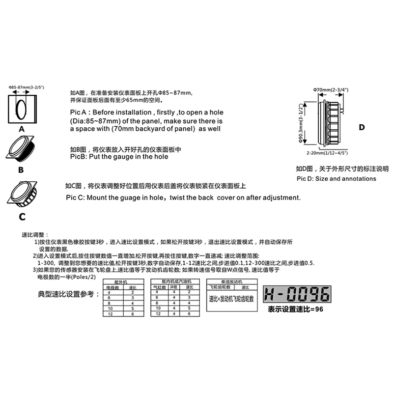 Tachometer Gauge Support:car, boat