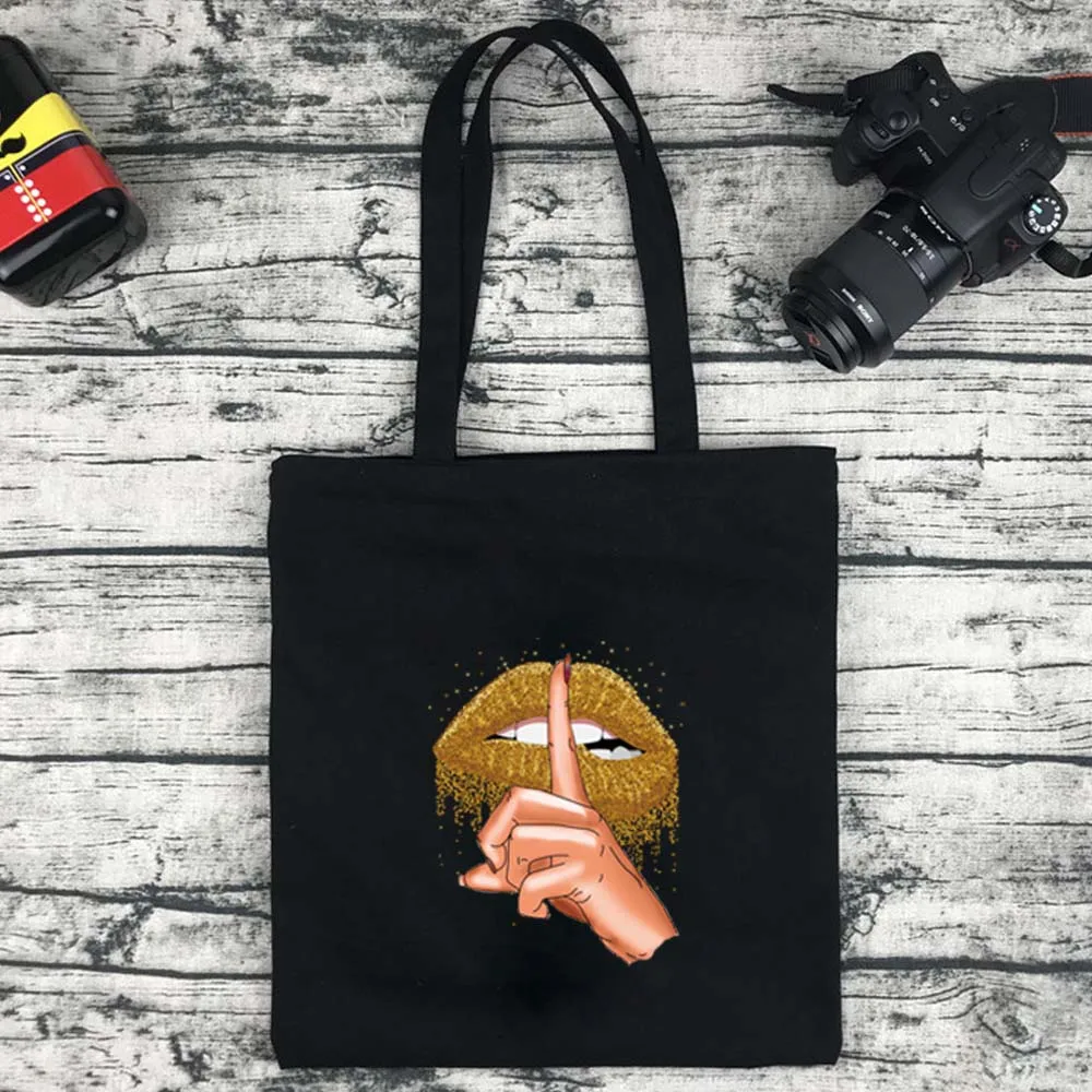 Сумка для покупок Женская холщовая с золотистыми буквами, модный са...