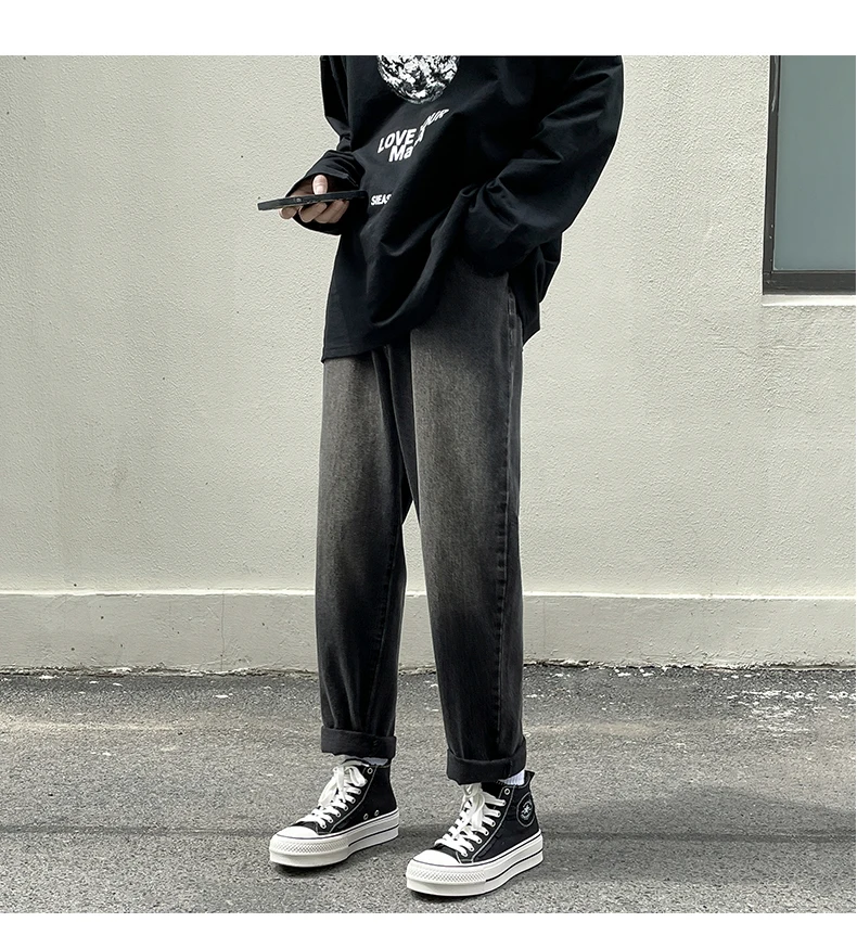 Джинсы LAPPSTER мужские мешковатые, модные брюки из денима в Корейском стиле Харадзюку, винтажные повседневные штаны из денима, черные, 2022