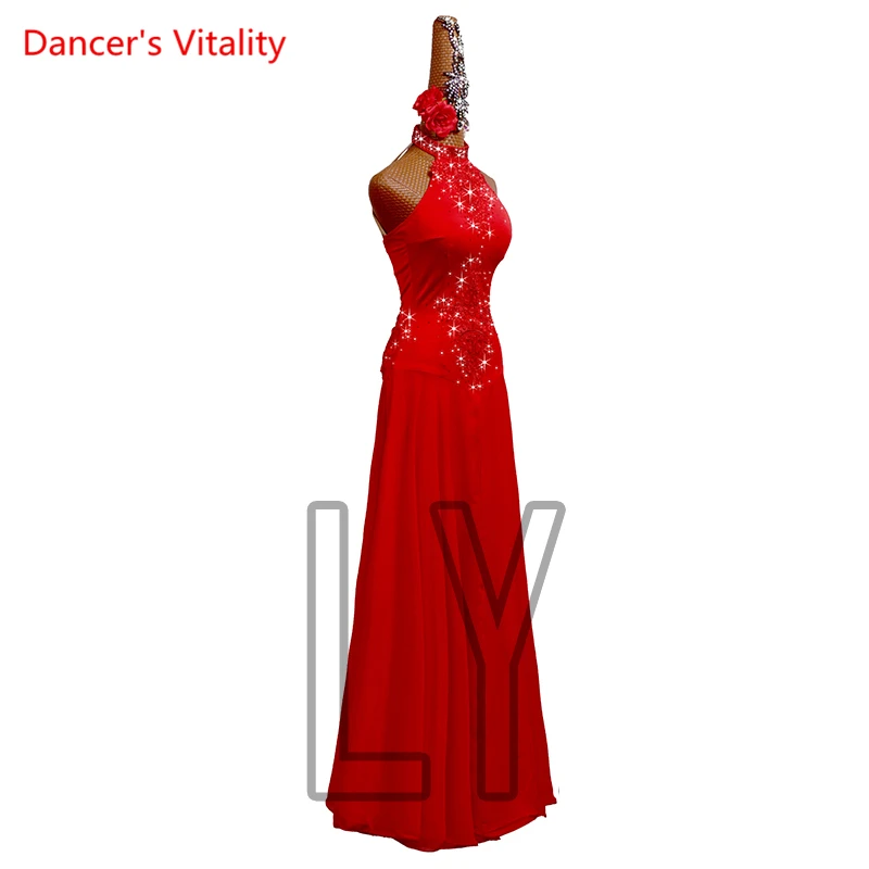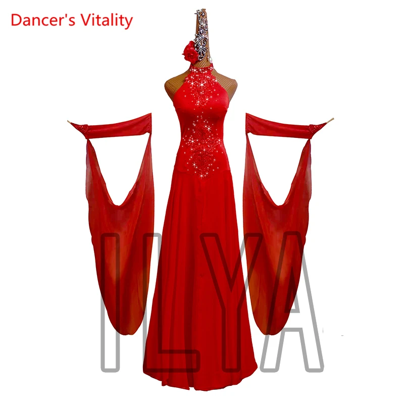 Платье Waltz для женщин и взрослых, высококлассная индивидуальная юбка с подтяжками и рукавами-фонариками для бальных танцев, профессиональная одежда для выступлений