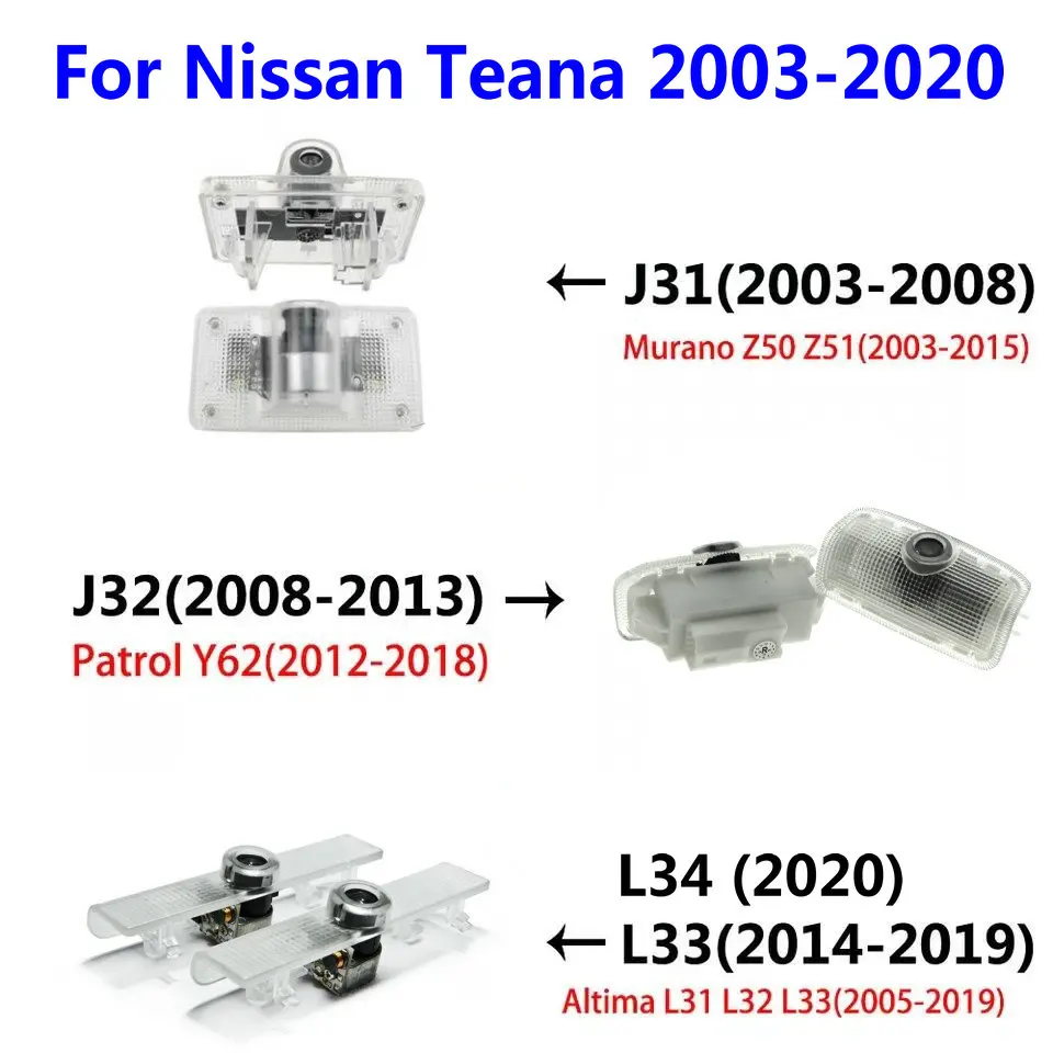 Светодиодный светильник на дверь автомобиля, 2 шт., проектор призраков, логосветильник s для Nissan Teana J31, J32, J33, Altima L31, L32, L33, L34, Murano, Z50, Z51, Patrol Y62