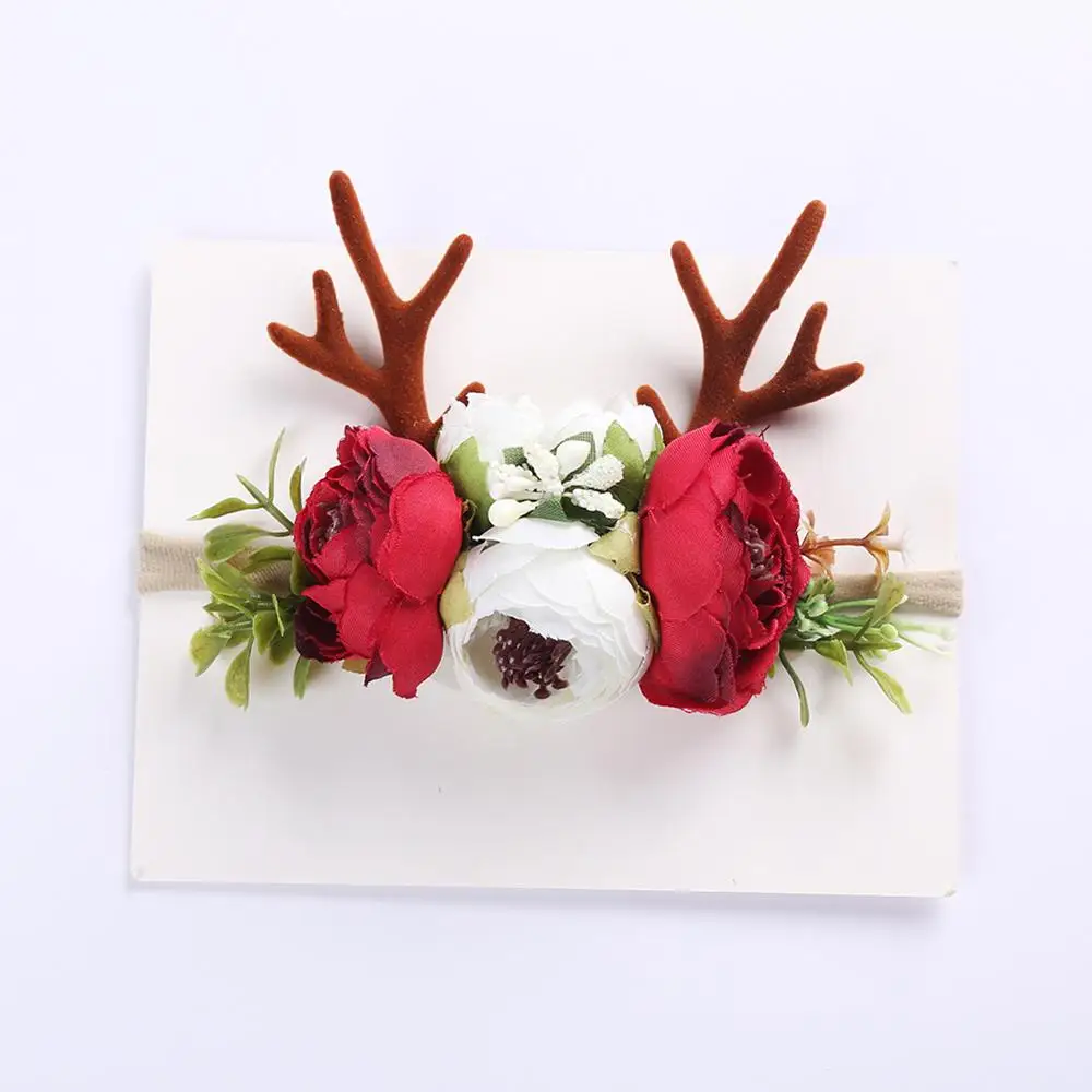 Рождественская Детская повязка на голову с цветочным рисунком; Мягкие эластичные нейлоновые повязки для волос ручной работы; Рождественские красные искусственные повязки на голову с цветочным рисунком