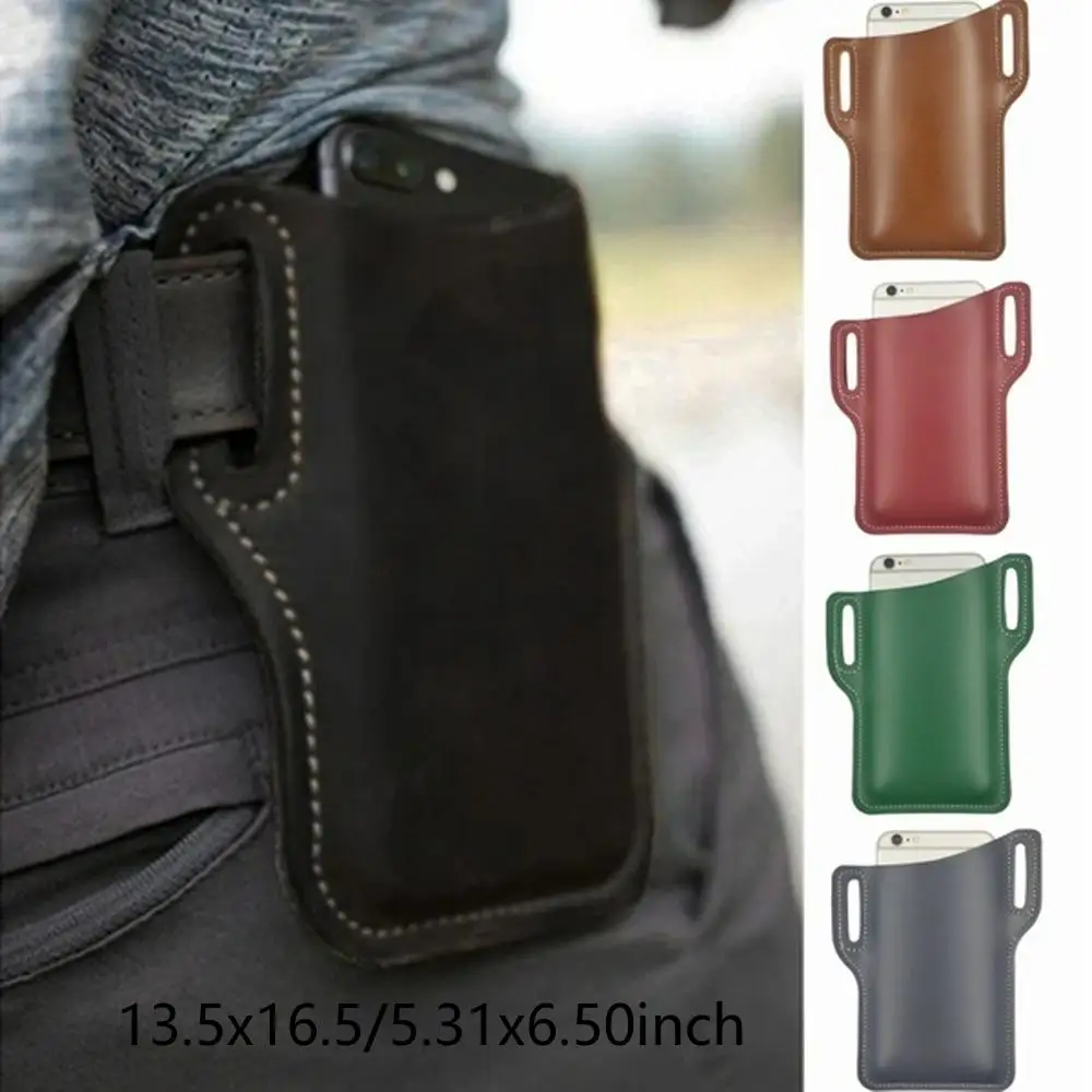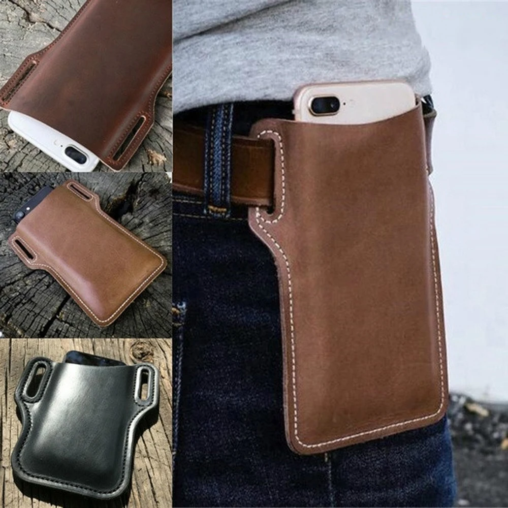 Мужская кожаная винтажная сумка на пояс, чехол для телефона с зажимом для ремня, дорожный походный кошелек