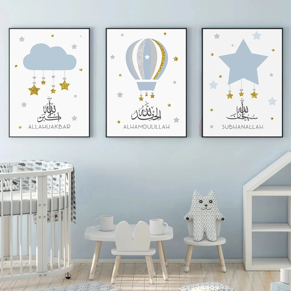 Фотография на холсте, плакат со звездами, облаками, воздушным шаром, Художественная печать, Мультяшные плакаты, настенные картины в скандинавском стиле, декор детской комнаты
