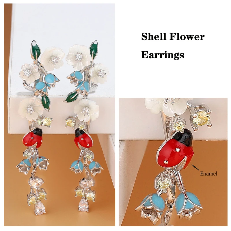 Ракушка цветок зеленый лист Эмаль животное Высокое качество циркон серьги ожерелье кольцо наборы для женщин ювелирные изделия 2021 тренд