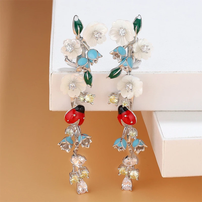 Женские серебряные сережки из серебра 925 пробы, с эмалью