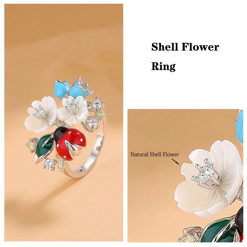 Кольцо женское из серебра 925 пробы, с натуральными ракушками