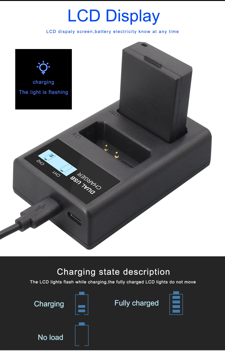 Зарядное устройство PALO 100% USB с ЖК-экраном и аккумулятором для ...