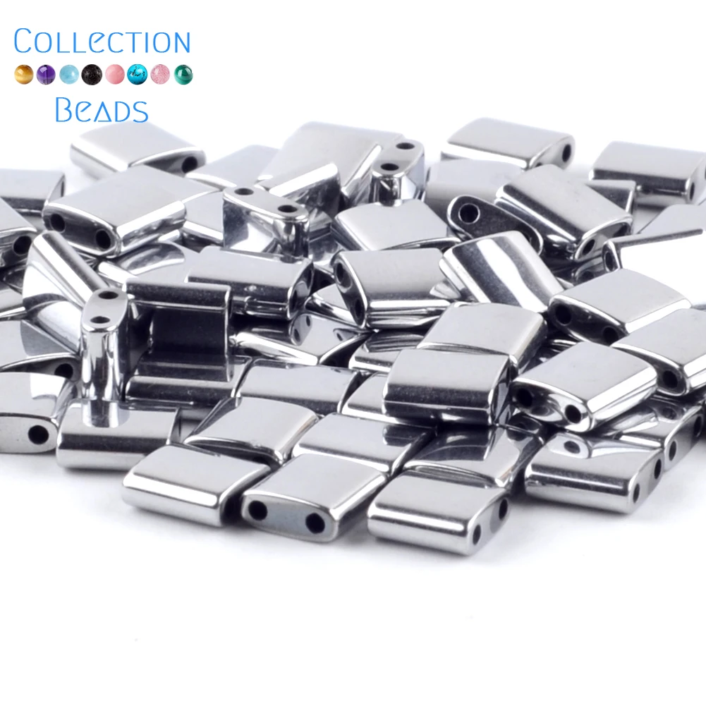 Серебряный с натуральным камнем покрытый гематит с двойным отверстием, квадратные разделители свободных бусин для изготовления ювелирных изделий «сделай сам», ожерелье, браслет, аксессуары