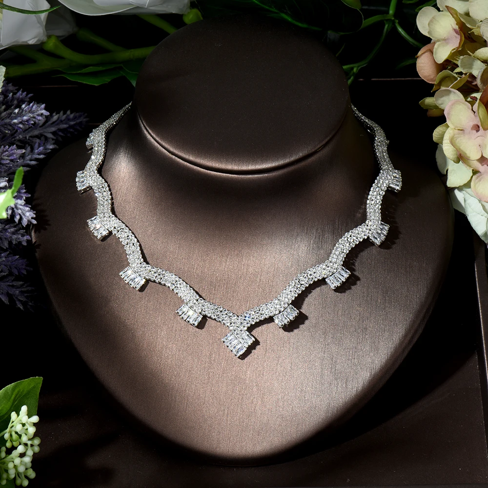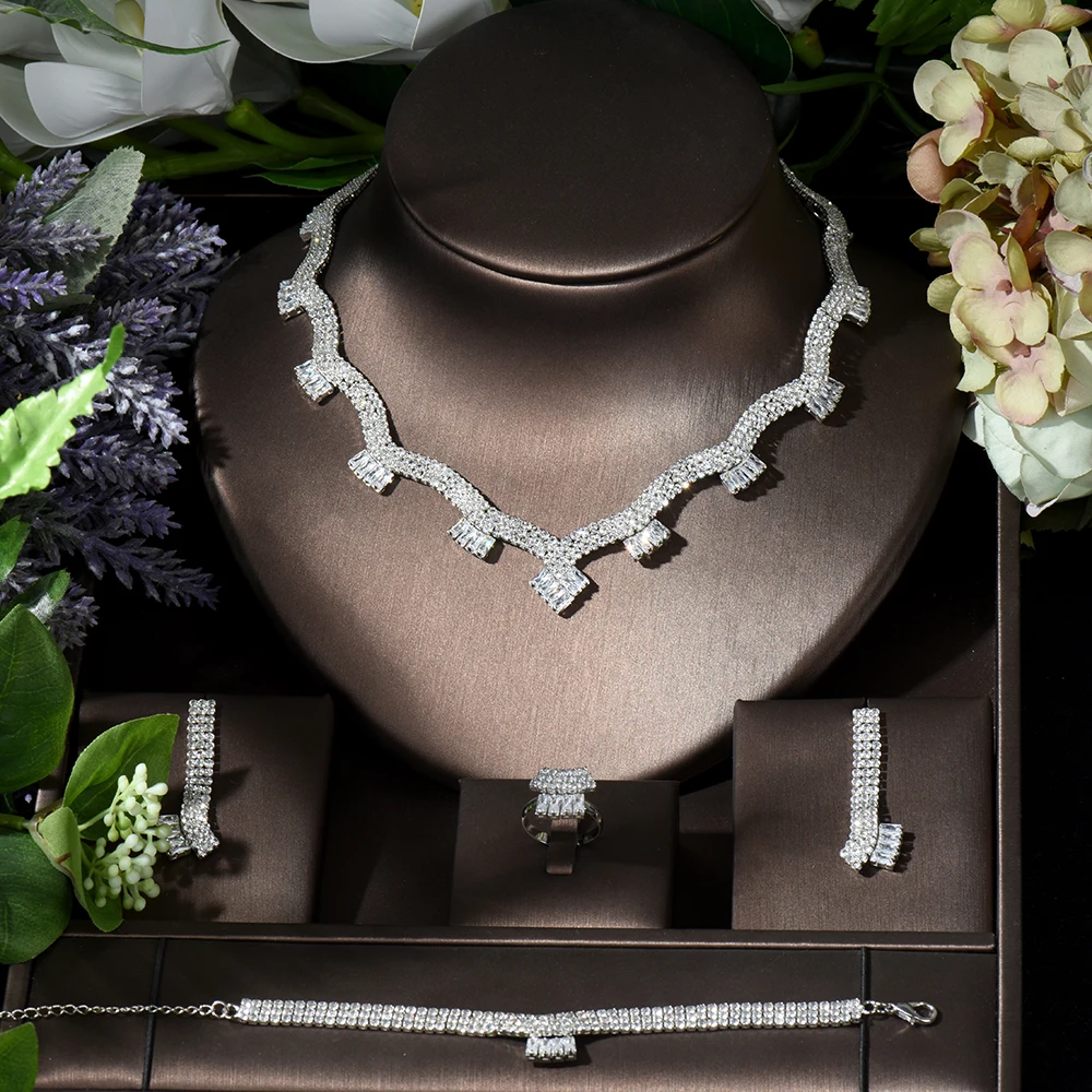 HIBRIDE роскошные 4 шт ожерелье и серьги набор багет циркония чокер...