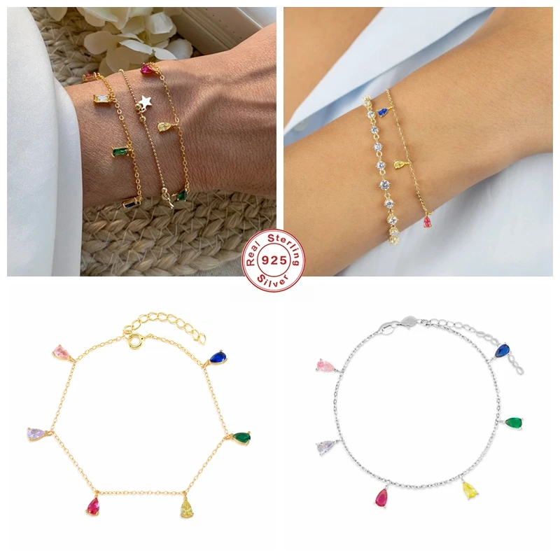 Женский браслет из стерлингового серебра s925 пробы с разноцветными каплями в виде пчелы, Геометрическая цепочка из циркония, браслет-цепочка, 925