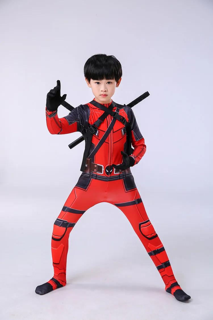 Детский костюм для косплея Zentai, костюм супергероя из фильма Дэдпул, красный костюм, цельный костюм для Хэллоуина, костюм для мальчиков и девочек