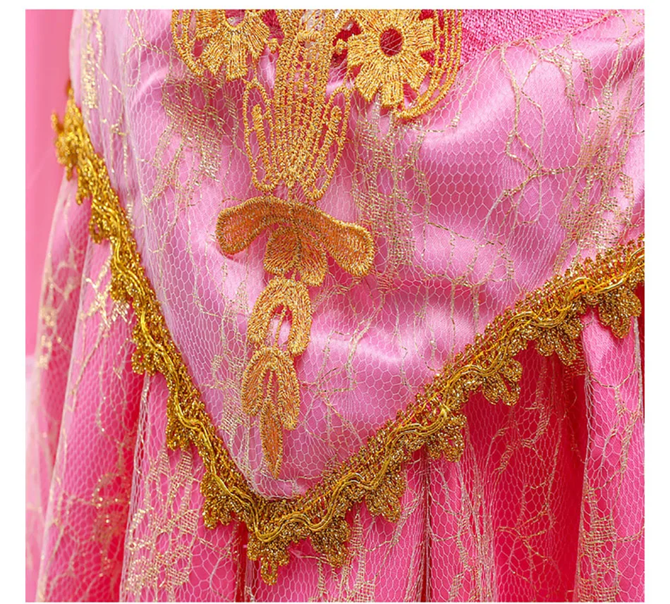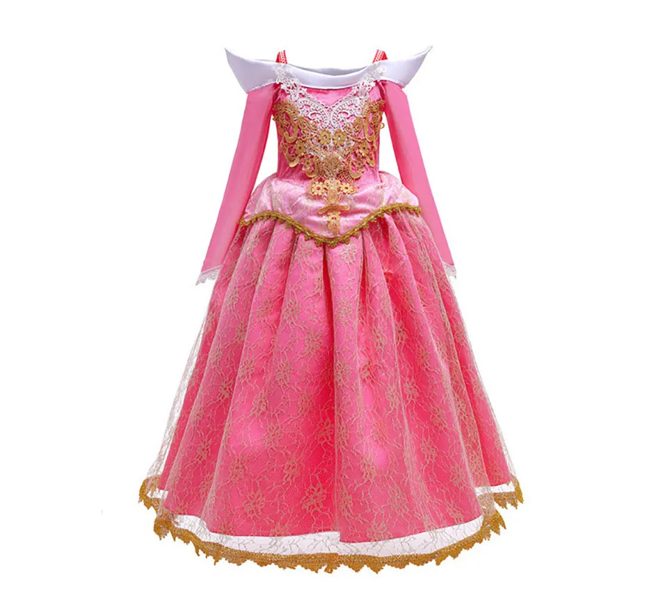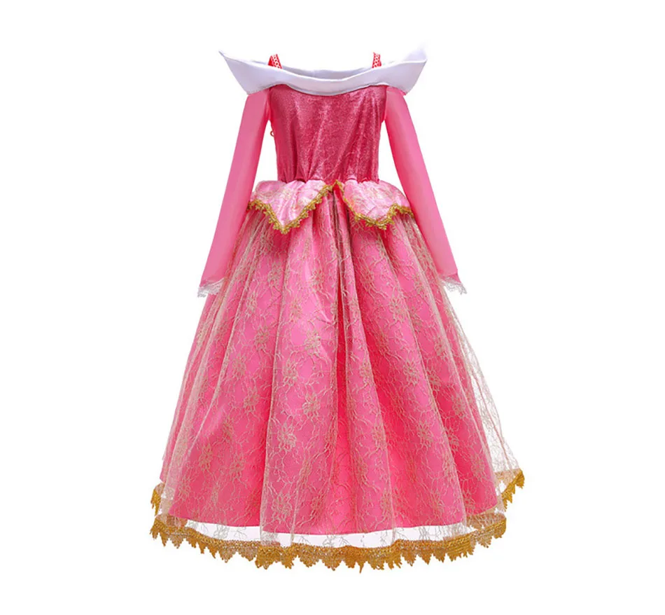 Костюм принцессы на Хэллоуин, летнее платье для девочек С авророй, пушистые розовые платья с открытыми плечами для девочек, красивое сказочное платье принцессы