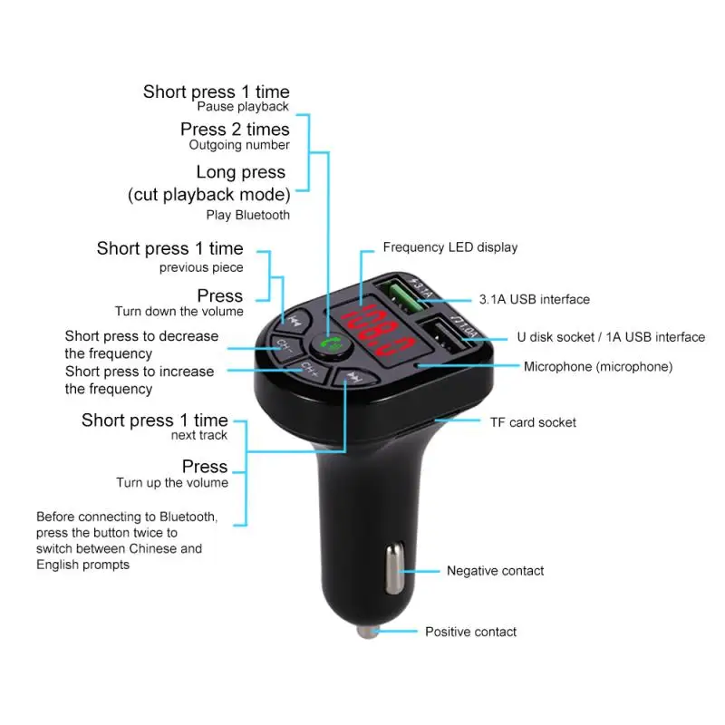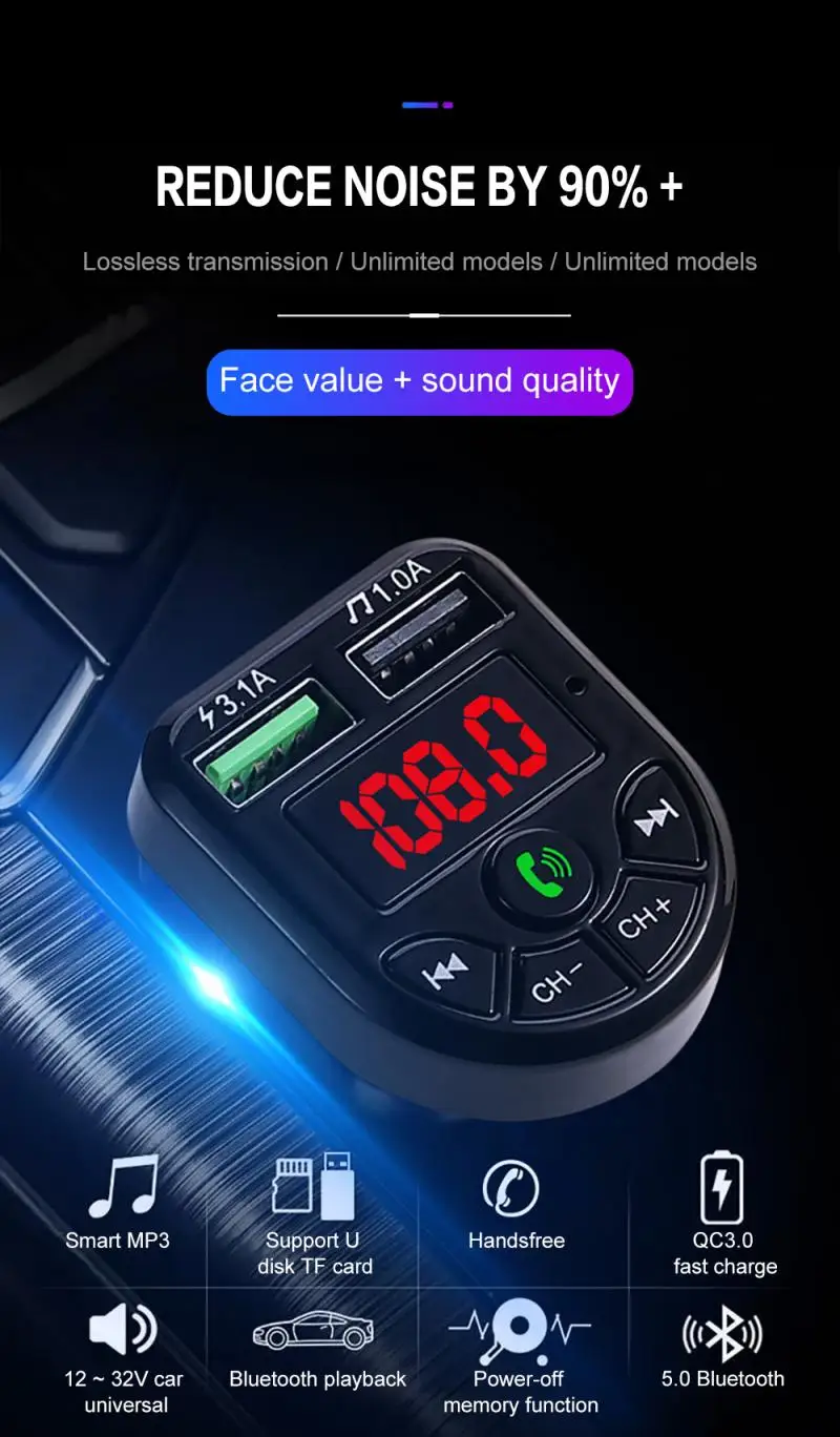 Fm-передатчик Bluetooth-совместимый 5,0 автомобильный комплект светодиодный дисплей двойной USB Автомобильное зарядное устройство 3.1A 1A USB MP3 музыкальный плеер Поддержка TF/U диск