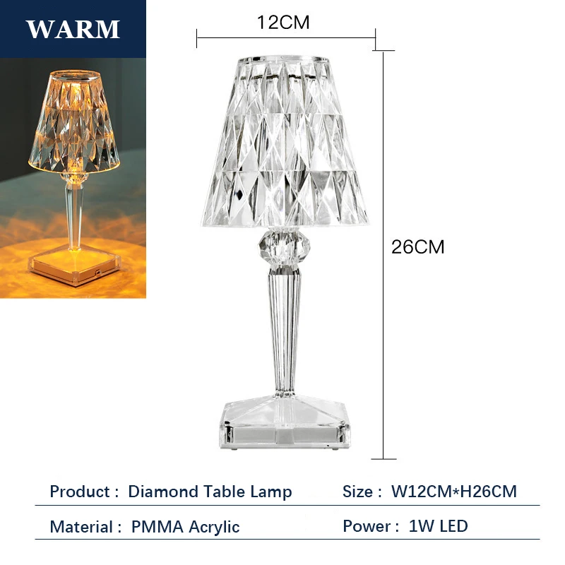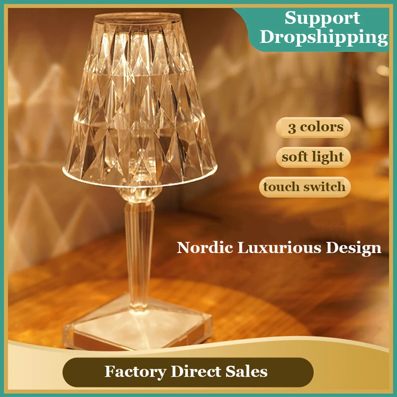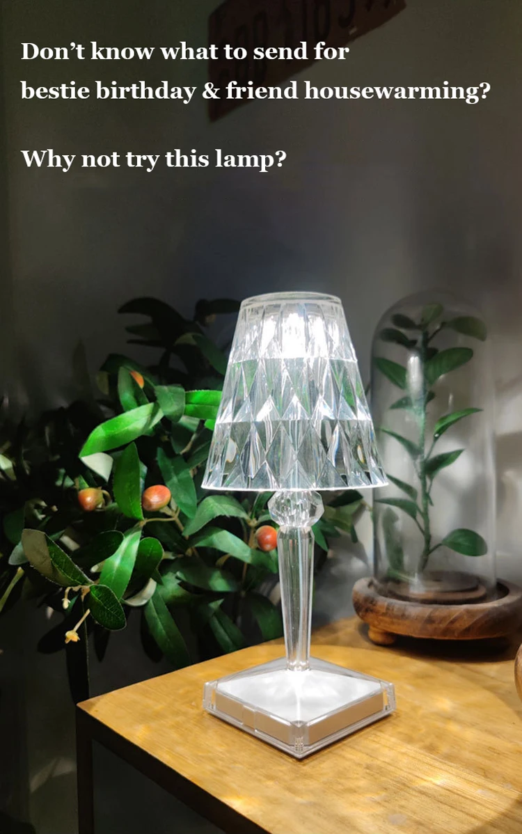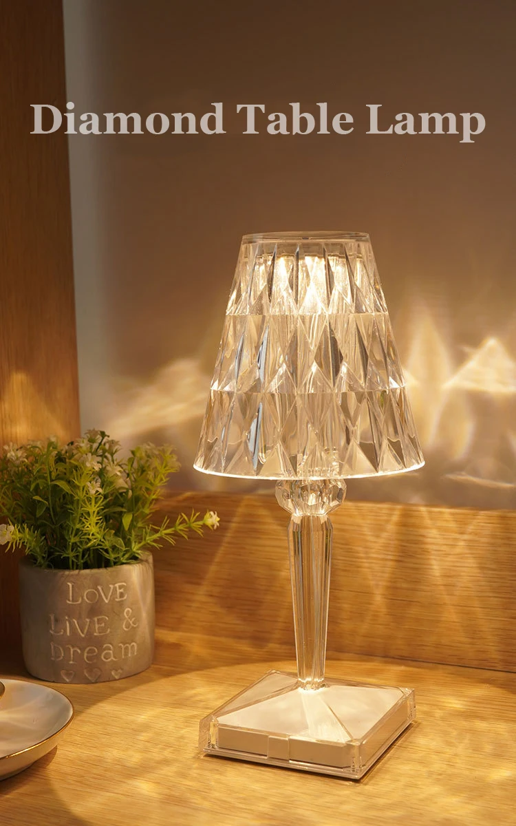 Алмазная настольная лампа, ночсветильник с кристаллами, акриловый декор для детской спальни, бара, кофейни, магазина, подарок