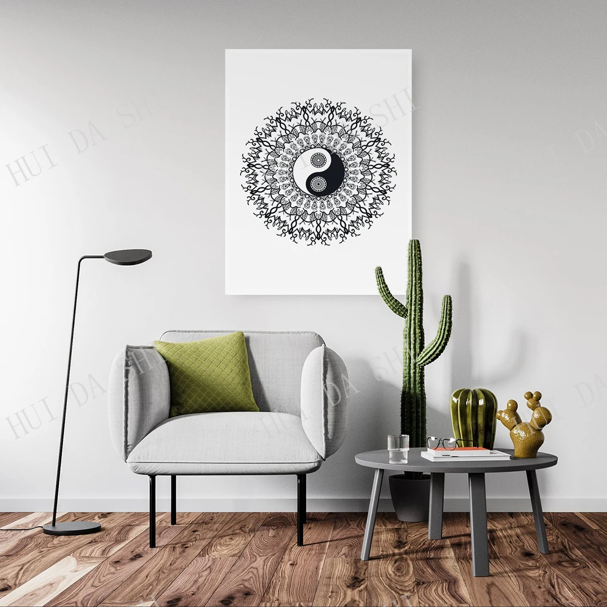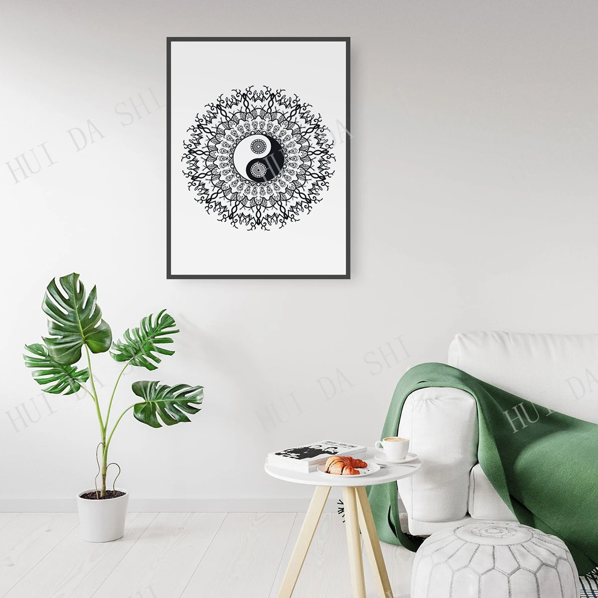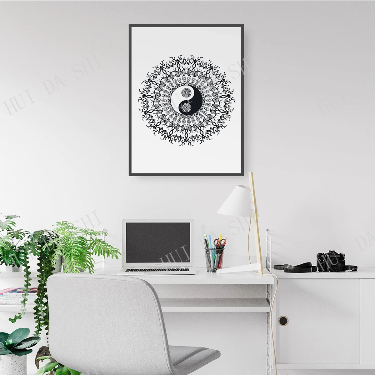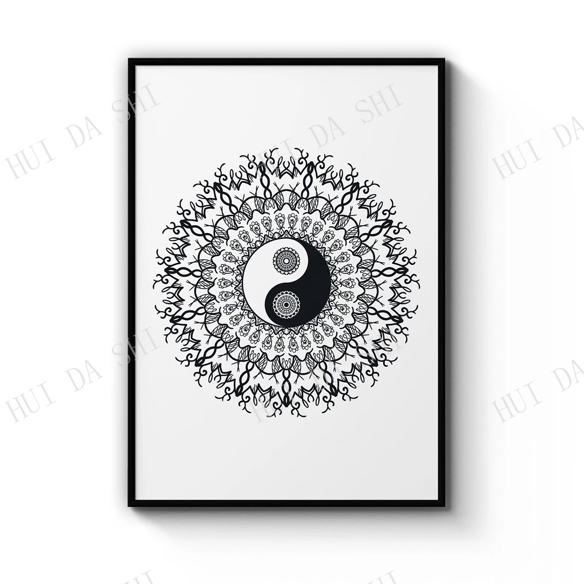 Мандала Инь Янь Успокаивающая Йога буддистская настенная Художественная печать плакат или холст