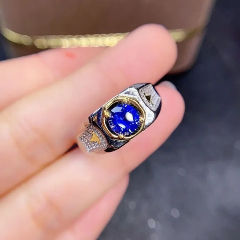 Индивидуальный тренд, блестящее кольцо с голубым Цирконом для мужчин, мужское кольцо с гравировкой по бокам, ювелирные изделия