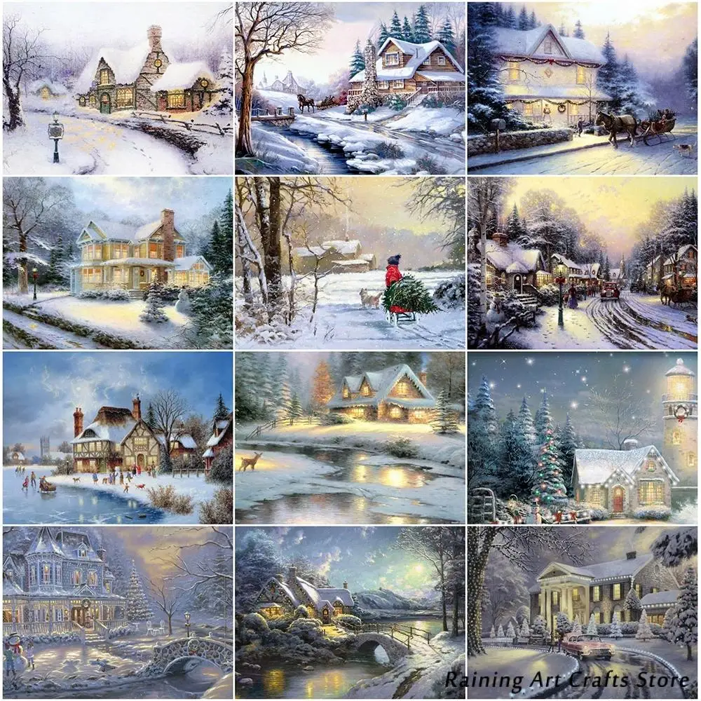 Алмазная живопись 5D "сделай сам", вышивка, зимний Снежный пейзаж, квадратные стразы, декор мозаичные картинки-вышивки
