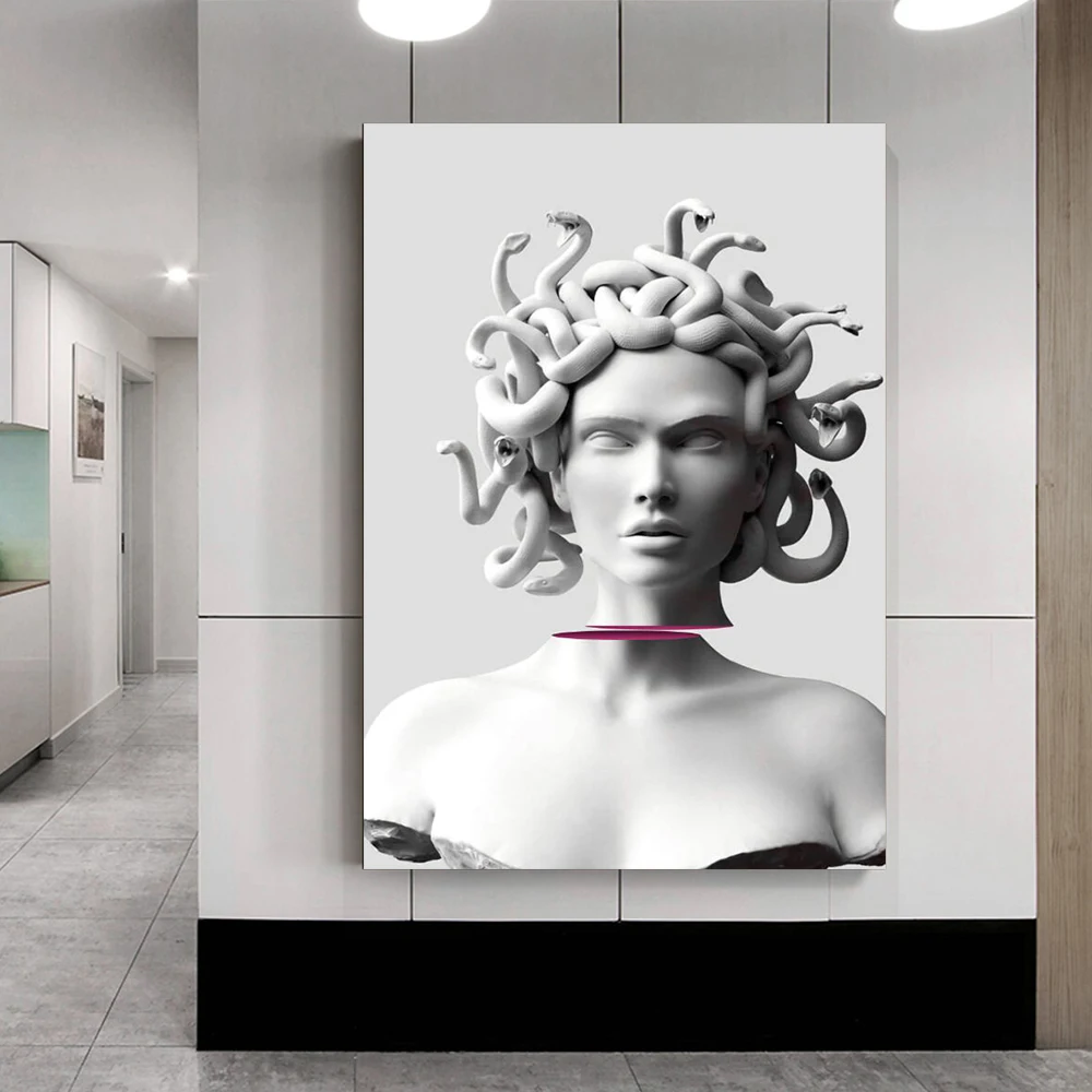 Скульптура Medusa Vaporwave, плакаты и принты, забавное искусство, статуя Горгоны, Картина на холсте, Настенная картина для декора гостиной